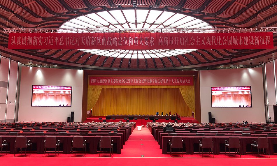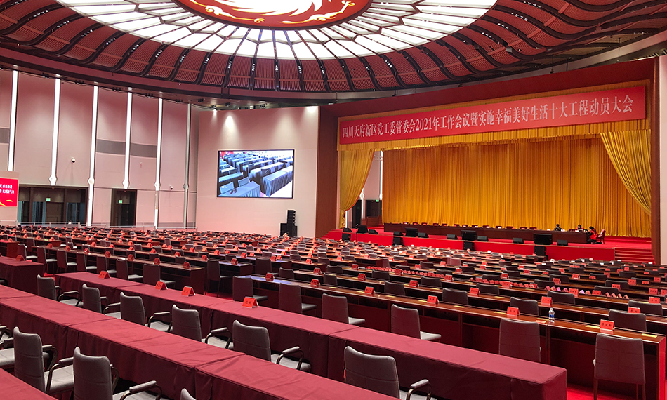 項目位于天府新區總部商務區,由會議中心 酒店、商務配套三大部分共同組成,總建筑面積約33萬平方米,天府國際會議中心落成以來,已完成多場大型商務會議、國家級國事活動整體接待和服務。