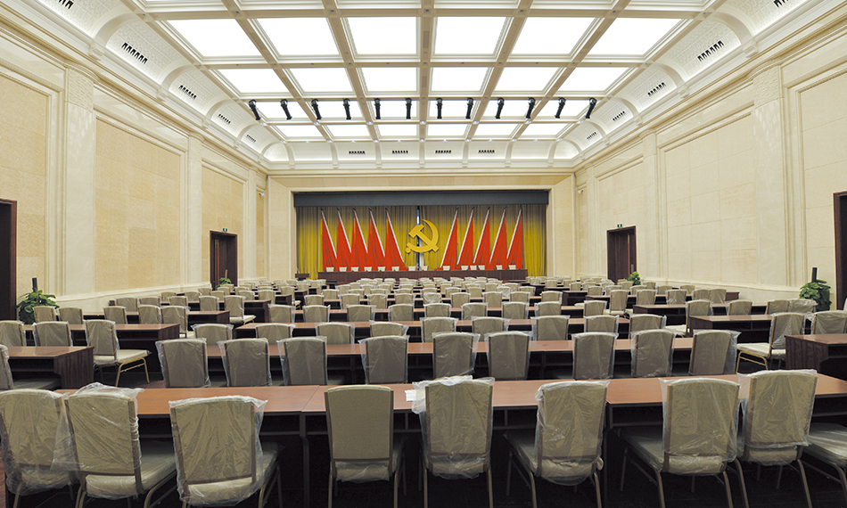 位于北京東城區,經過半個多世紀的風雨洗禮,見證了北京的輝煌與成就的同時,也經受著歲月地雕琢,為了能更好的開展日常政務活動,為社會公眾提供更多優質的服務,信息智能化系統需改造升級。新系統要求要滿足召開市委常委會、專題會、中心理論組學習、大型報告會、電視電話會等日常會議智能化需求,此外還要滿足貴賓接待、新聞發布、簽字儀式、資料放映、舞臺演出等要求,并實現高清視頻、高保真還音、大屏幕顯示、信號調度、觸摸互動、電影放映、會場監看、錄音錄像、視頻會議、同聲傳譯等功能,能夠通過網絡化管理和智能集中控制。