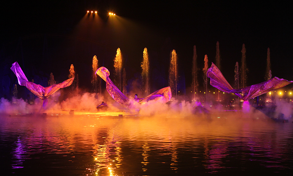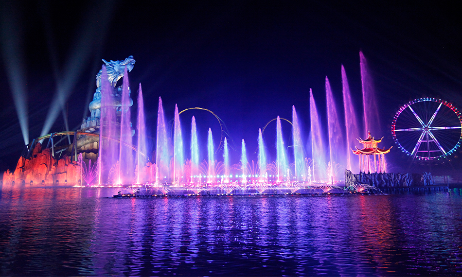 合肥萬達主題樂園是合肥萬達城的重要組成部分,占地40公頃,園內分為徽州古韻區、梨園春秋區、歡樂水鄉區、巢州古城區、淝水之戰區和夢蝶仙境區。仁歌承建了主題樂園里面淝水劇場(2000座)、夢蝶劇場(525座)、大湖秀、花車巡游等區域的音響、燈光、視頻設備一體化工程。其中大湖秀更是在大型水面上以白龍島為背景,結合安徽著名的巢湖文化黃梅戲為主題,融合了人、水、聲、光、電等元素的實景演出,采用了演藝級別舞臺燈光、音響、投影等專業設備。自項目竣工開園以來已為近百萬觀眾奉獻了精彩的視聽盛宴,帶動了當地文化旅游產業的發展。
