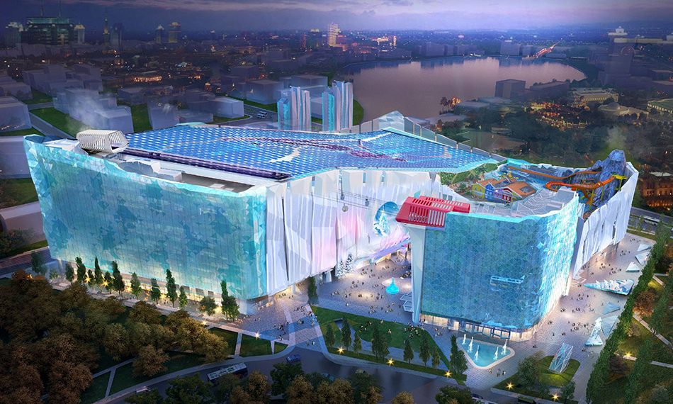 該項目主要分為室內(nèi)滑雪場、室內(nèi)外嘻水中心、度假酒店、精品酒店四個部分和商業(yè)配套,下設(shè)一層地下室,總建筑面積約30萬平方米。仁歌負責該項目的五個區(qū)域:包含布谷鳥舞臺、洞穴探險、登山體驗、沖浪池舞臺和火山特效,共涉及舞臺燈光,音響,互動視頻,水特效等系統(tǒng)內(nèi)容。