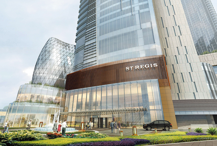 位于成都市提督街99號,面積達4.2萬平方米,為超五星級酒店,是當?shù)氐臉酥拘越ㄖ瑩碛?79間豪華客房,38間套房、多功能會議室、大宴會廳、健身中心、SPA、游泳池、酒吧、特色餐廳等設施。